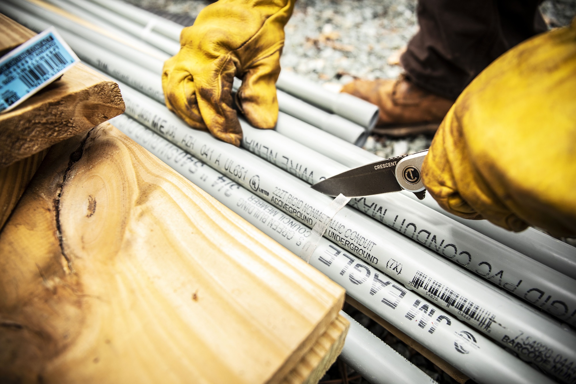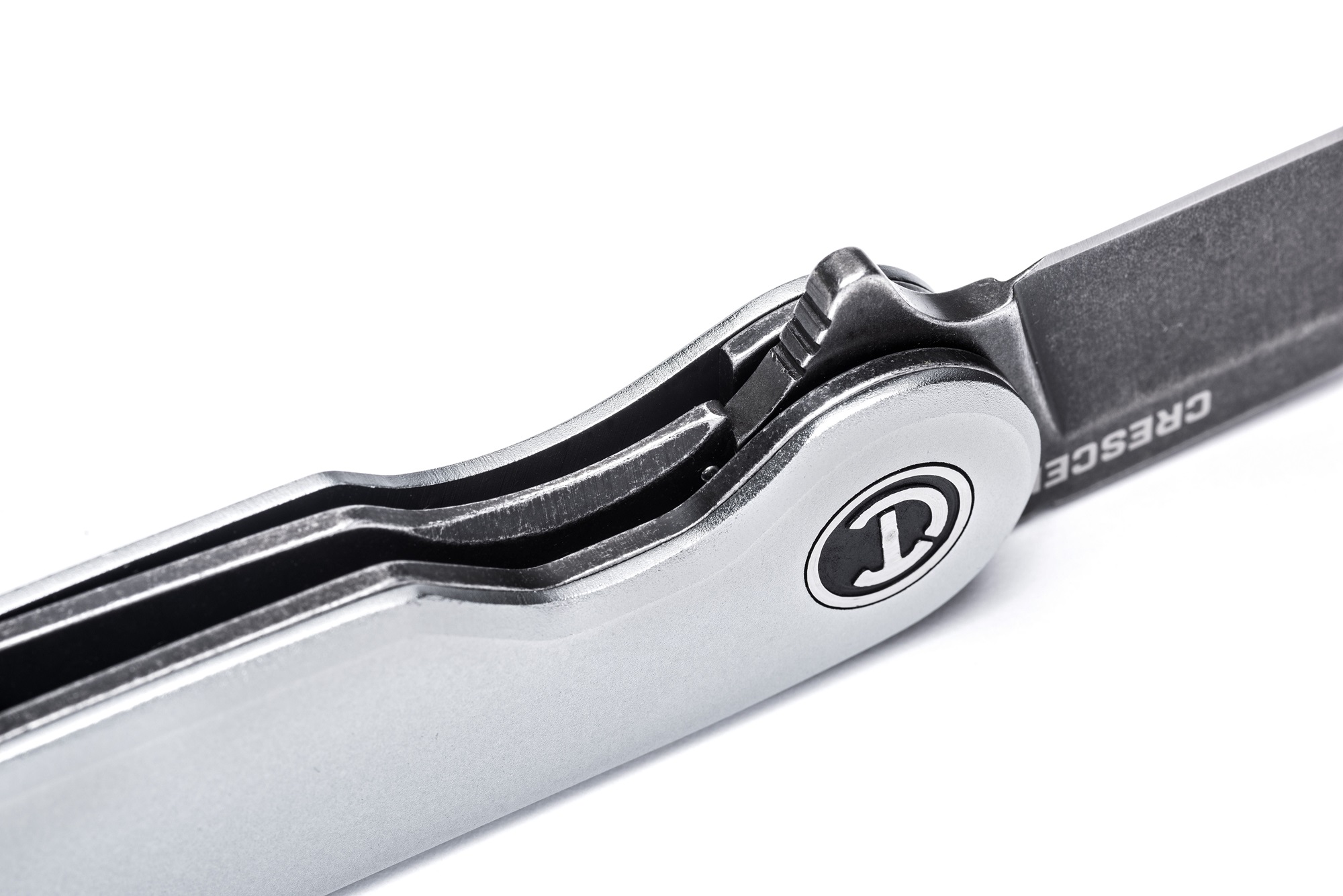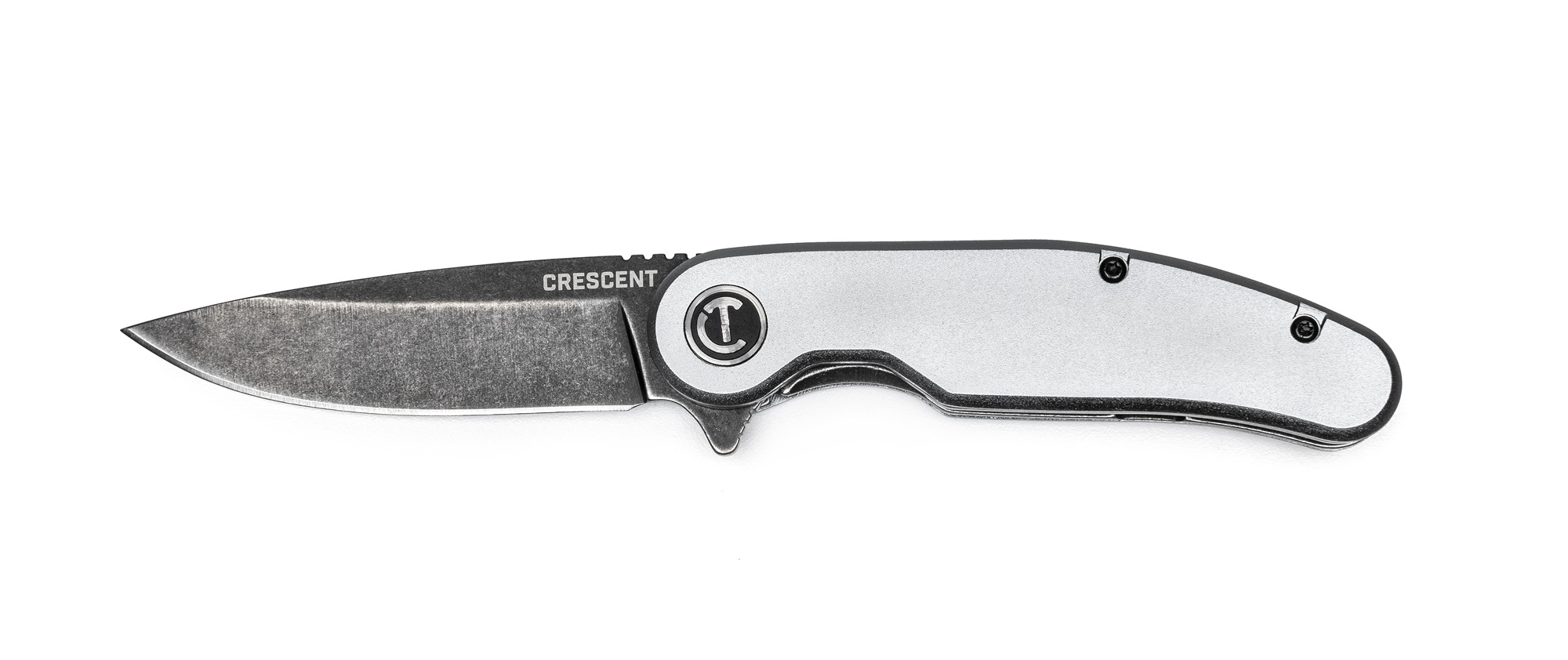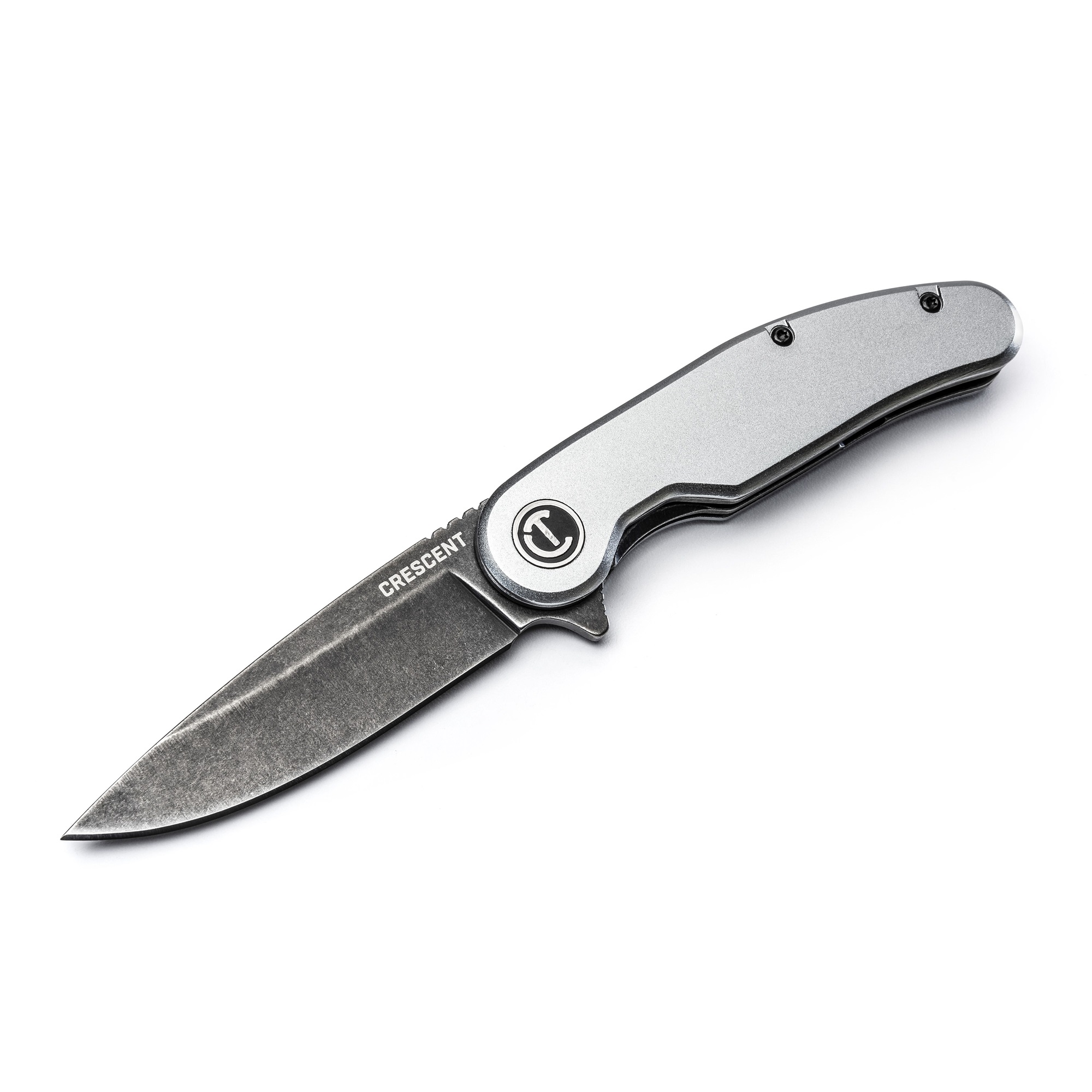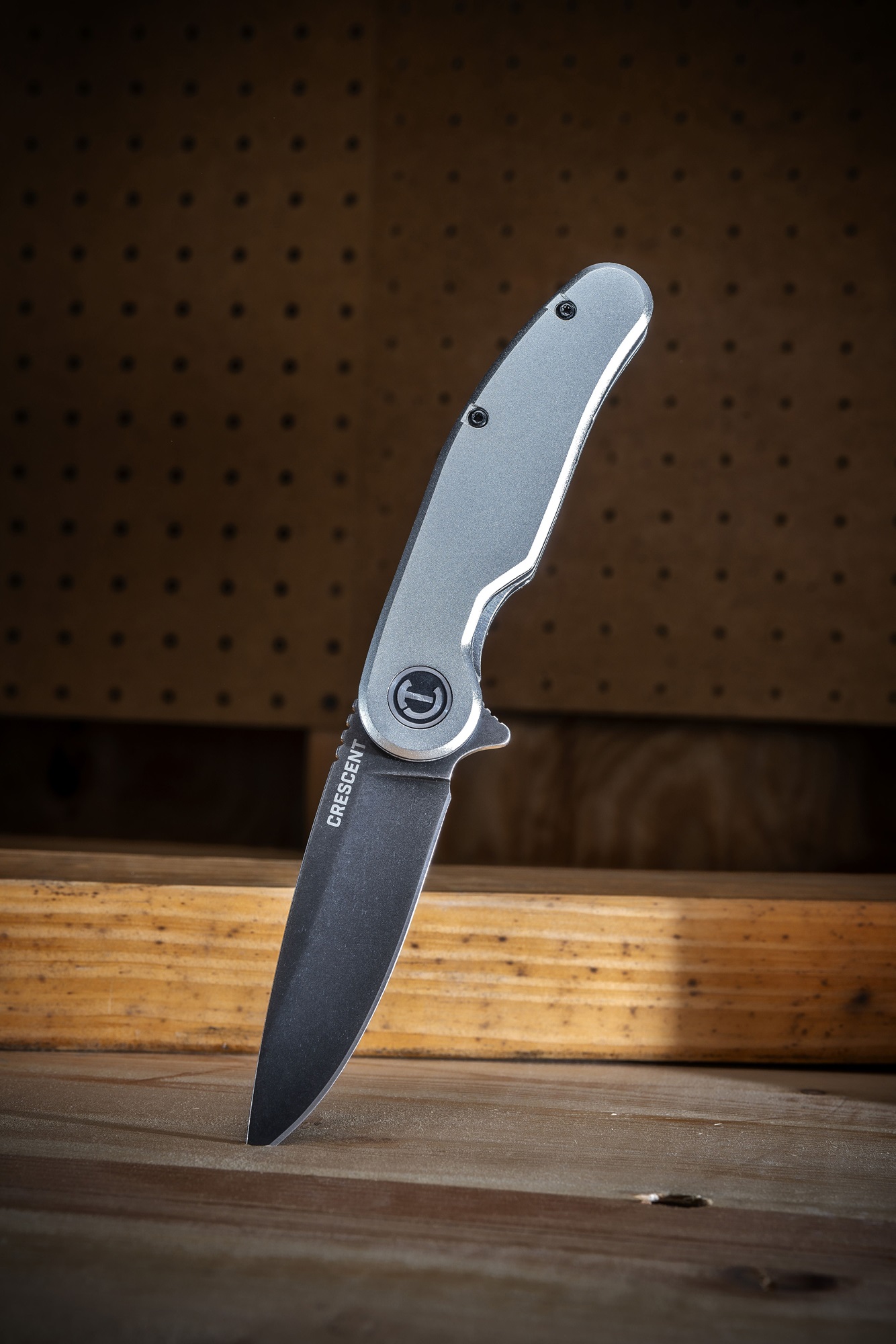 - The Crescent CPK325A has a heavy-duty D2 steel drop point blade with a combination of cutting performance, blade strength, easy maintenance, and overall durability that makes it the perfect Every Day Carry. Its gray wash blade finish resists corrosion and provides a striking contrast to its natural anodized aluminum handle, which, in addition to its outstanding strength-to-weight ratio, is ergonomically designed to optimize hand and finger contact points for enhanced fit and superior control. Precision ball-bearing flipper action provides smooth blade deployment, while a full metal core and liner lock design assures secure locking of the blade in the open position and easy closing. A deep pocket carry clip keeps the CPK325A well concealed, yet always accessible