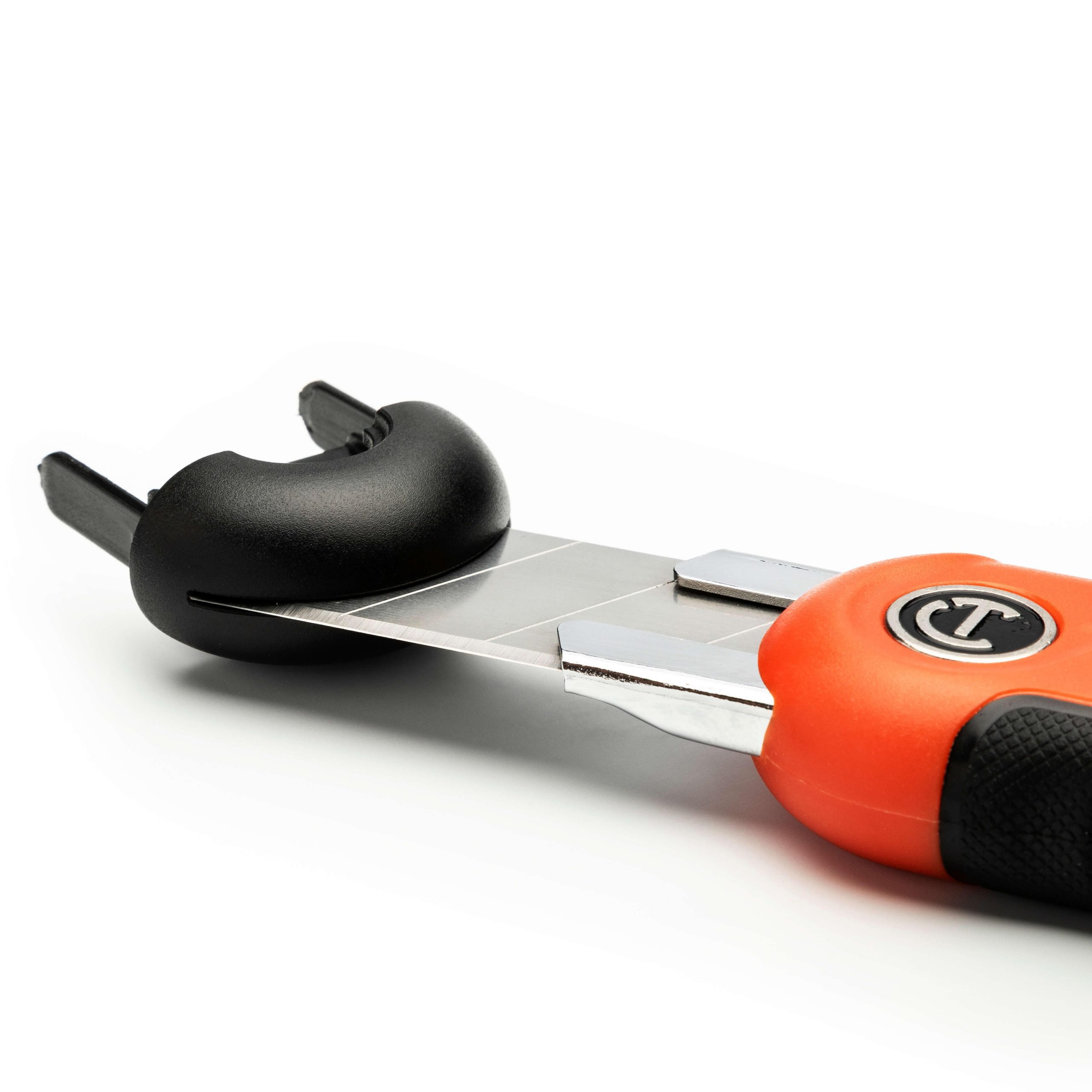 - Removable end cap stores up to 3 spare blades and doubles as a safe blade-segment snap-off tool.