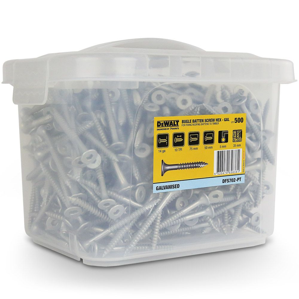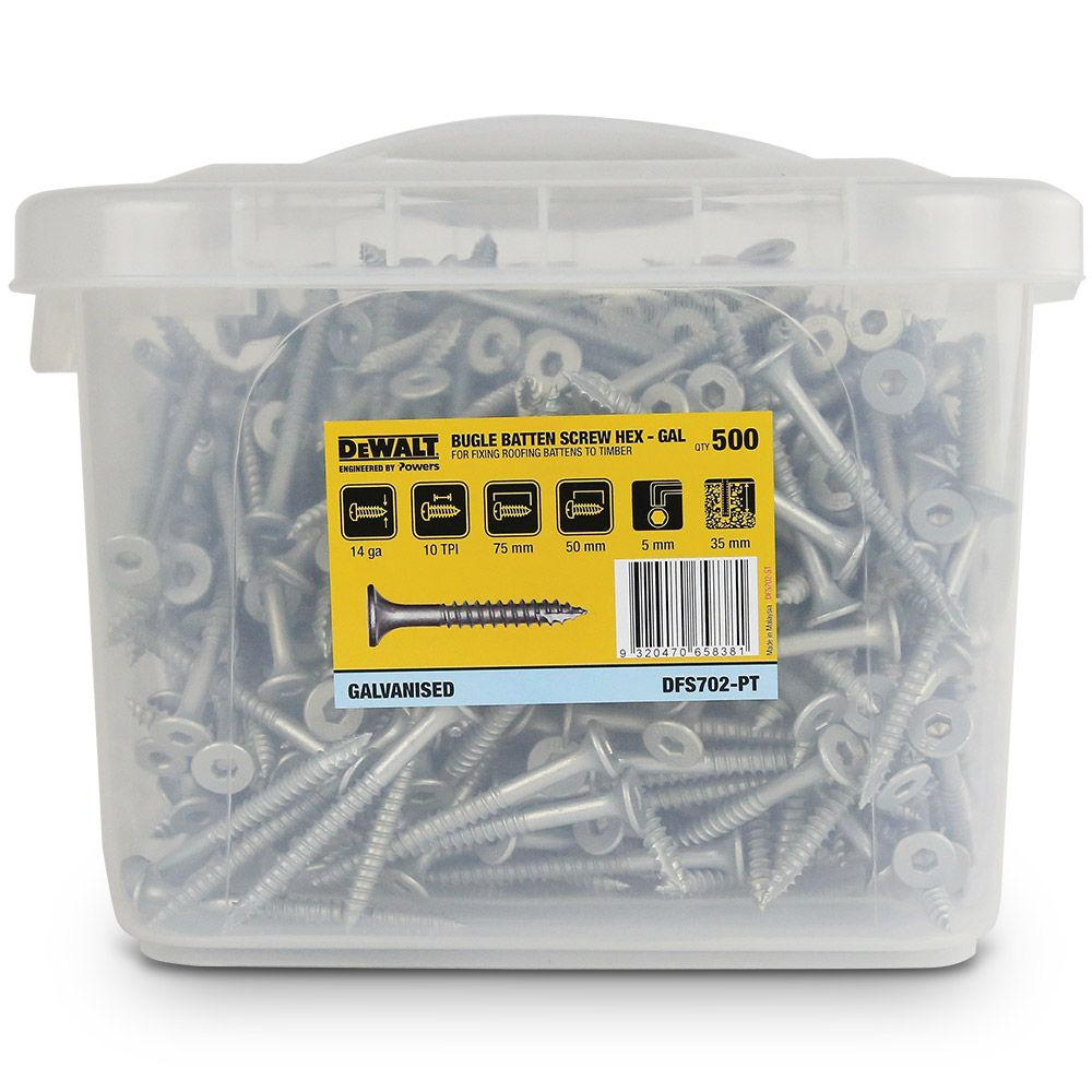 DeWALT DFS702-PT Bugle Batten Screw Hex Galvanised Type 17 14ga x 75mm Quantity of 500 – Engineered by Powers
