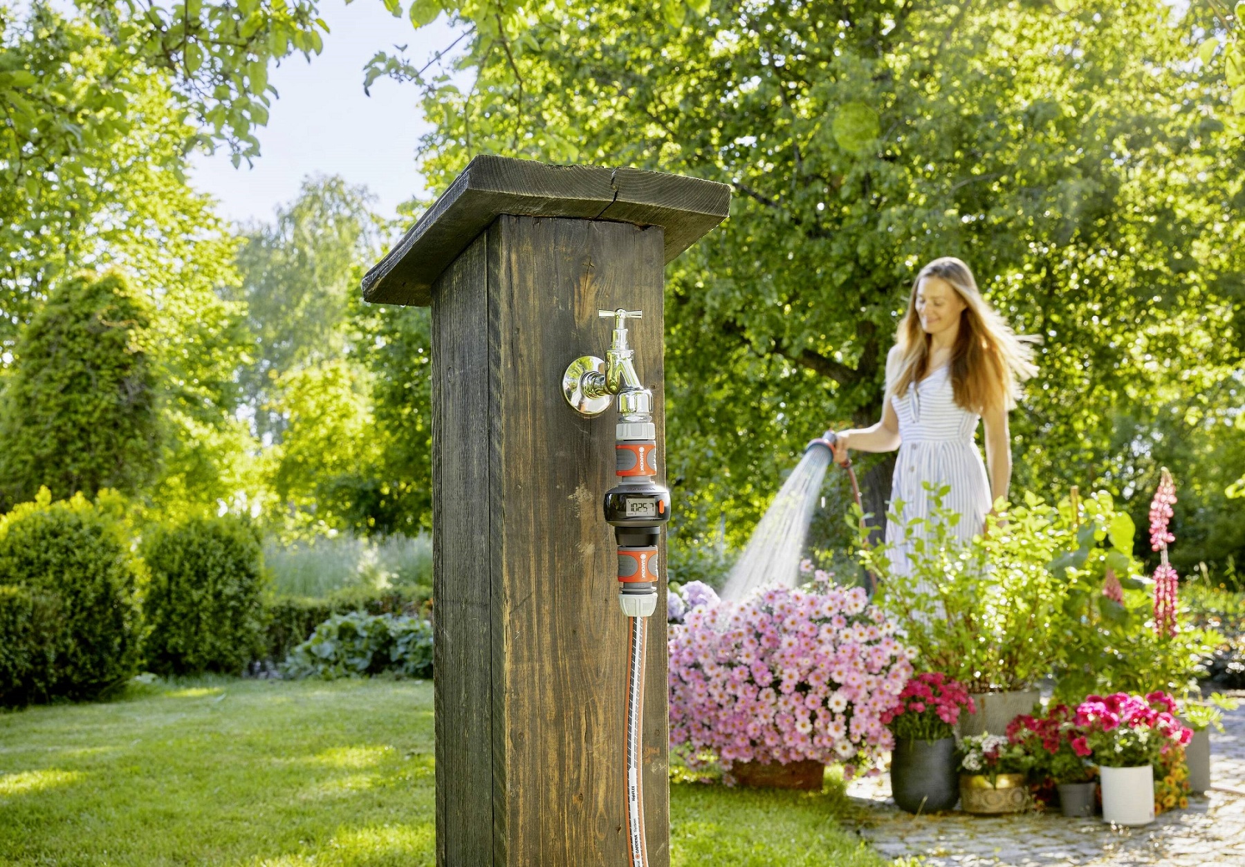 - Perfect irrigation is a balancing act. Let the innovative GARDENA AquaCount Water Meter help you water your garden in a controlled and mindful manner. It brings the science of precise measuring to your irrigation
