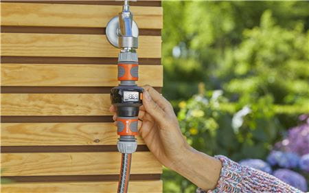 The Water Meter AquaCount can be connected either to the water tap or directly to the end of the hose and can be positioned horizontally or vertically. The rotatable display can be read comfortably in any position