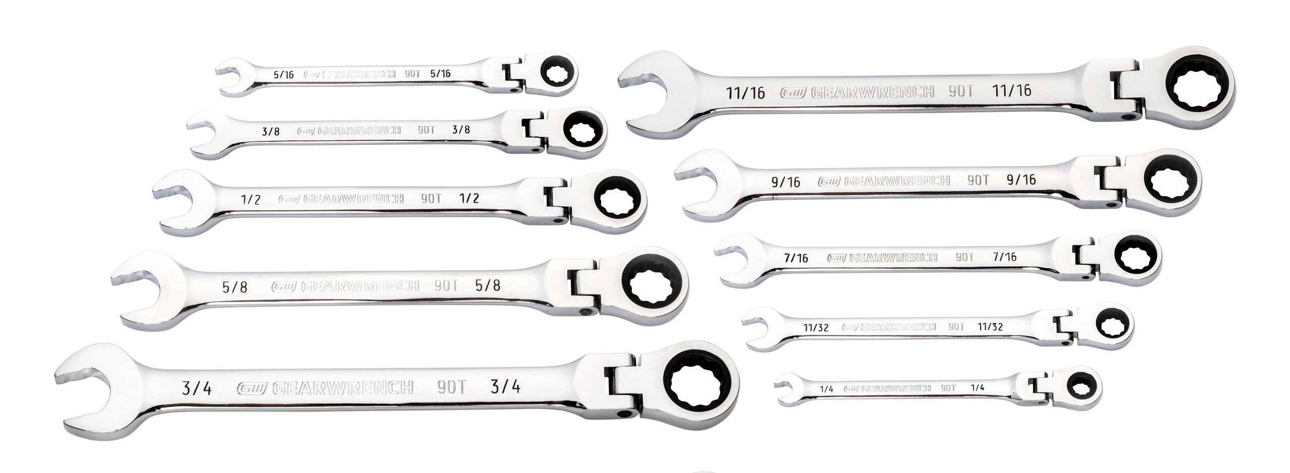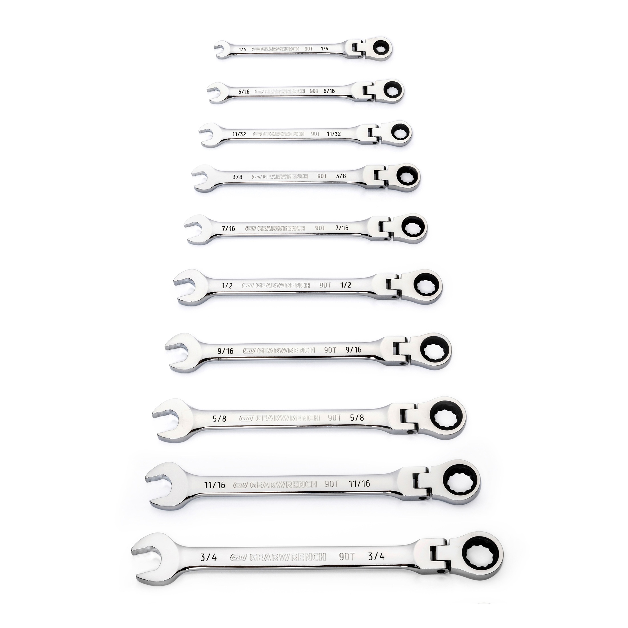 GEARWRENCH 86758 10 Piece 90 Tooth Flex Head Combination Ratcheting Wrench Spanner Set SAE/Imperial 90T
