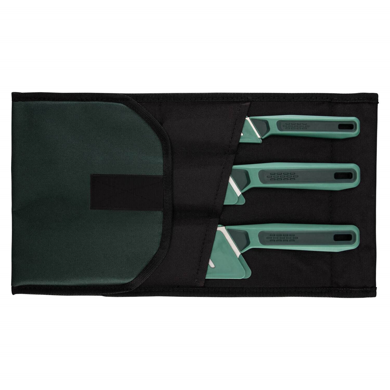 - Contains an 8.26 cm paring knife, a 15.24 cm serrated utility knife, and a 20.32 cm chef knife, 3 sheaths, and a case