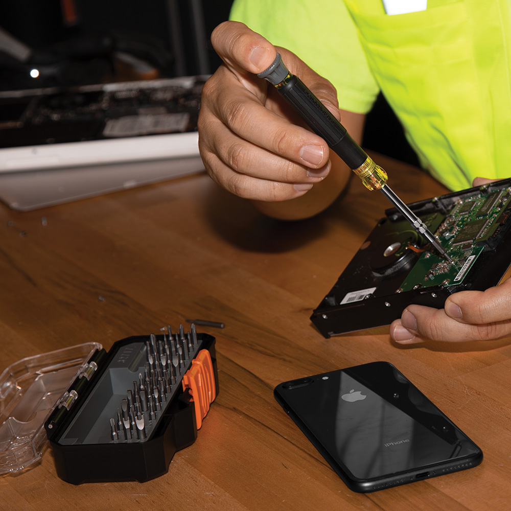 - Precision screwdriver set includes 39 bits for various applications, including the repair of most Apple® products
