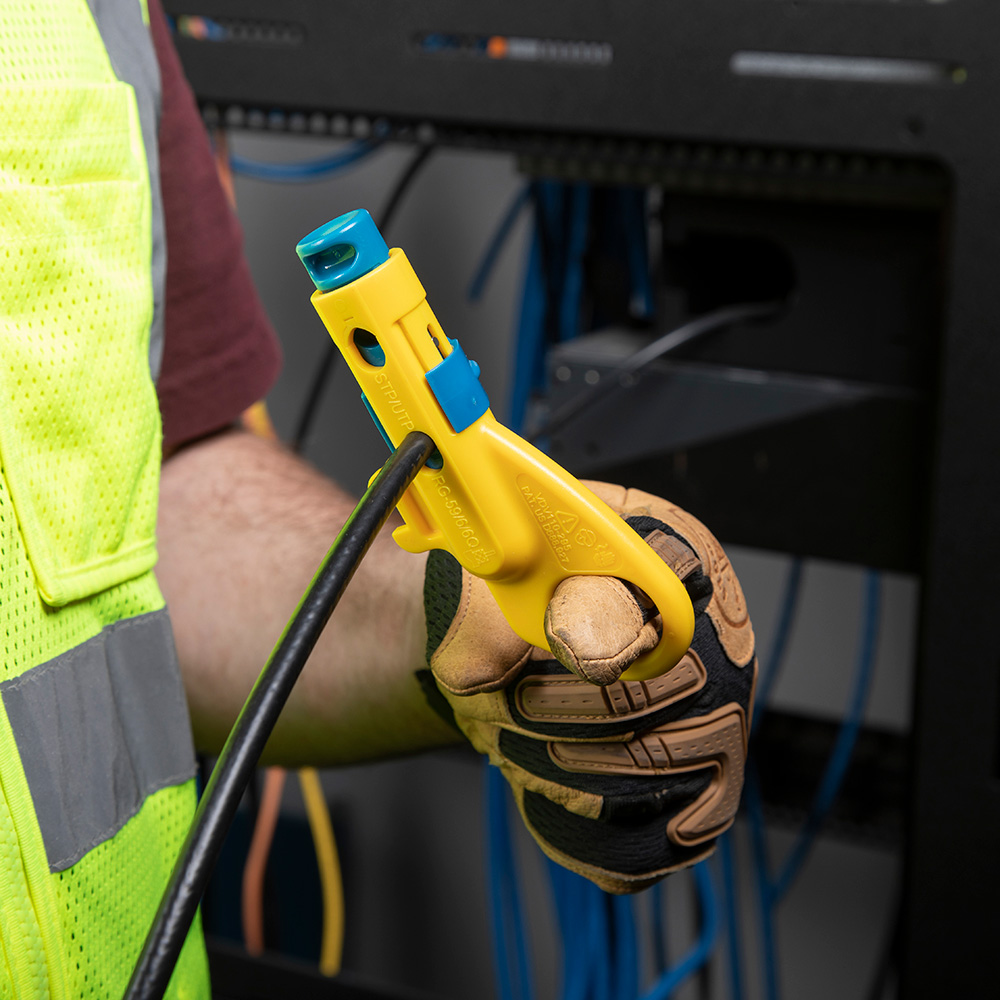 - Easily and cleanly strips both coaxial and twisted-pair cable including RG59, RG6/6Q, CAT3, CAT5, CAT6 and 6A sizes