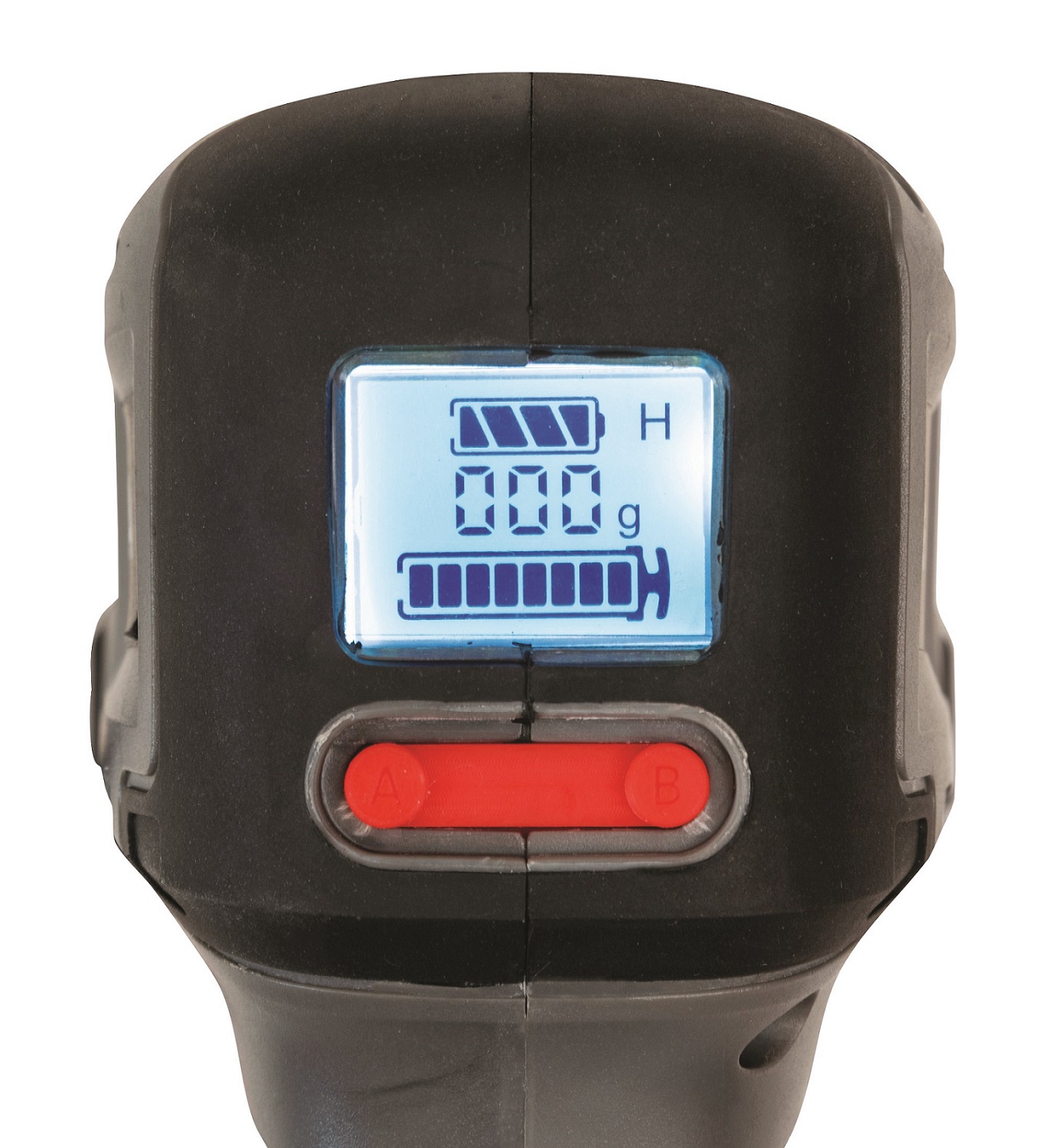 - Backlit display provides real time battery level, grease level & grease dispensed feedback and information