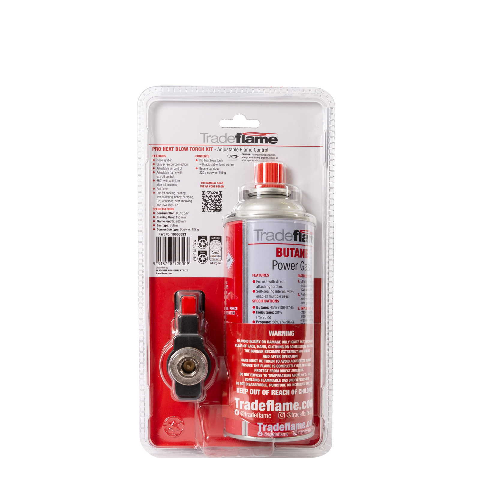 - The Pro Heat Blow Torch Kit features adjustable air control and is compatible with screw-on fitted Butane Gas. Adjustable flame, air control and anti-flare features make the Pro Heat Blow Torch the ideal choice for beginners, DIY project, culinary dishes or lighting that BBQ or firepit!