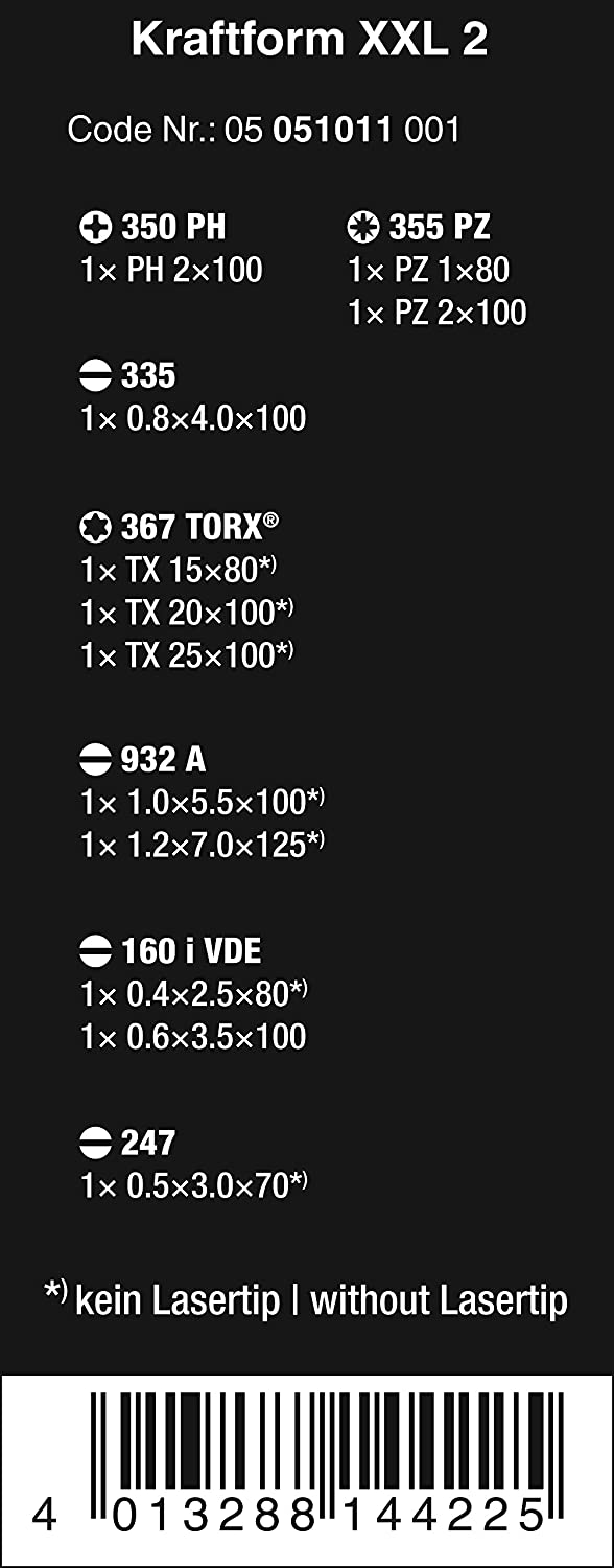 Wera 051011 Kraftform XXL 2 12 Piece Screwdriver Set